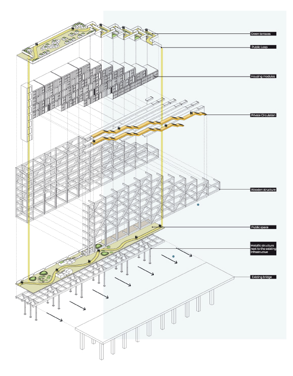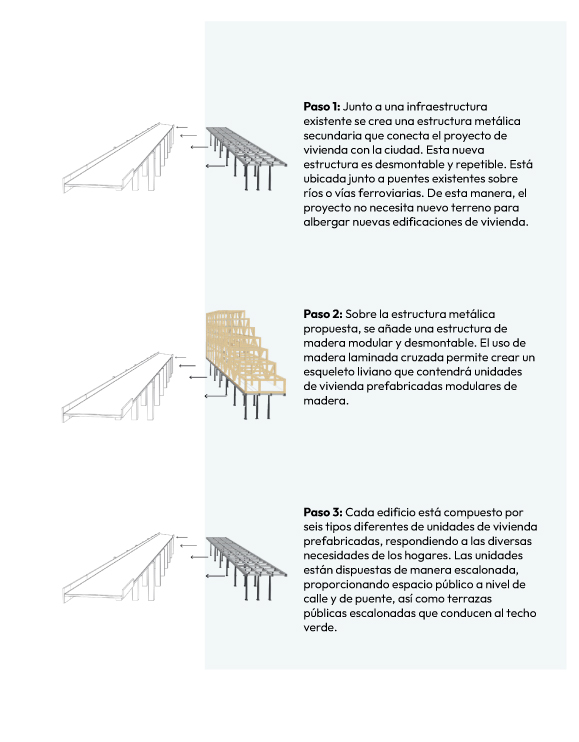 El proyecto fue desarrollado de manera colaborativa, con un enfoque integral tanto en la conceptualización como en la materialización de la propuesta. La presentación final incluyó una serie de diagramas y esquemas diseñados para comunicar de manera clara las estrategias arquitectónicas y urbanas planteadas.