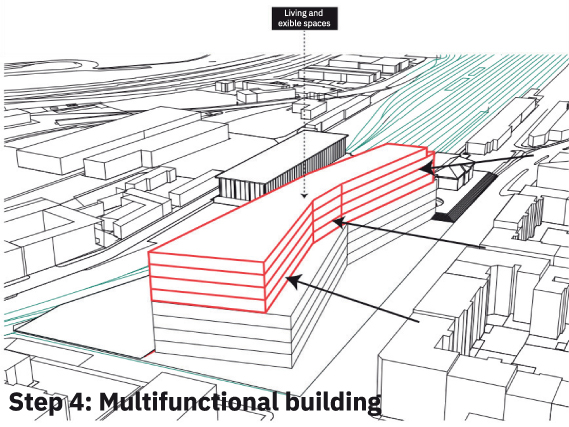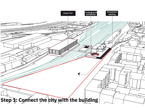 La propuesta gira en torno a cómo, a pesar de la disminución de las interacciones físicas debido a la tecnología, las personas pueden generar nuevas formas de conexión y construir una comunidad digital. Basado en esta premisa, se diseñó un edificio multifuncional en un terreno industrial en desuso, junto a la estación de tren de la ciudad.